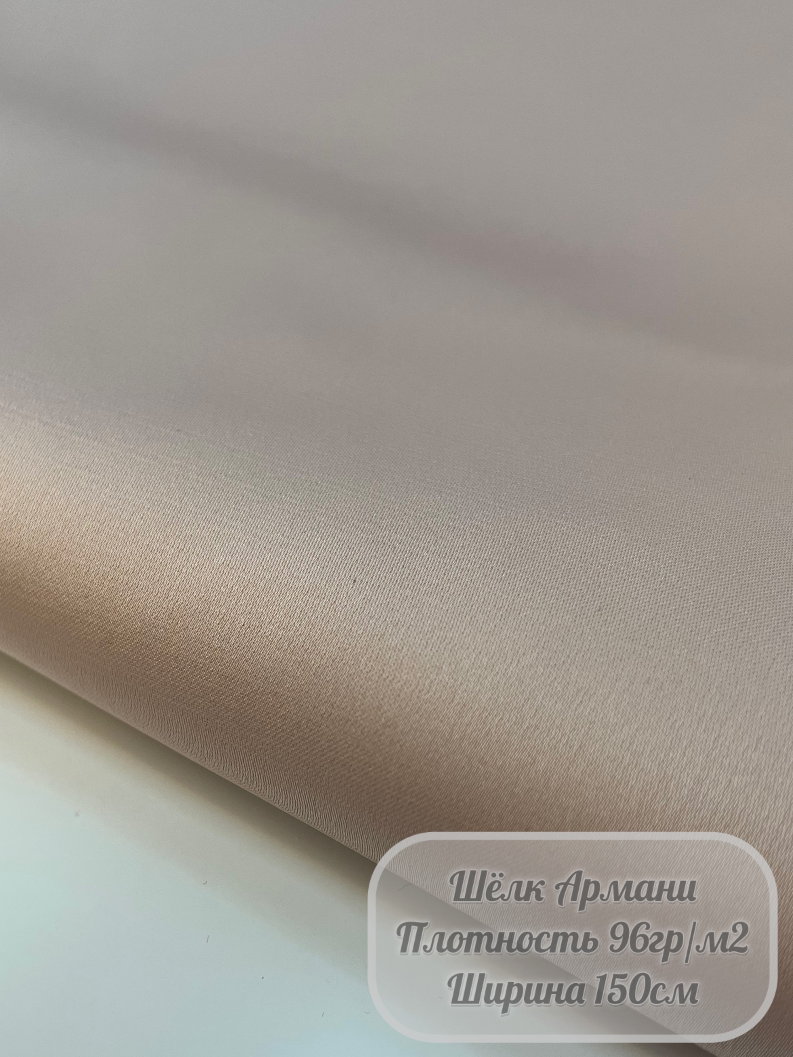 Шёлк Армани — лёгкая струящаяся ткань с благородным матовым блеском, имитирующая натуральный шёлк. Отличается мягкой пластичностью и приятной тактильной текстурой.